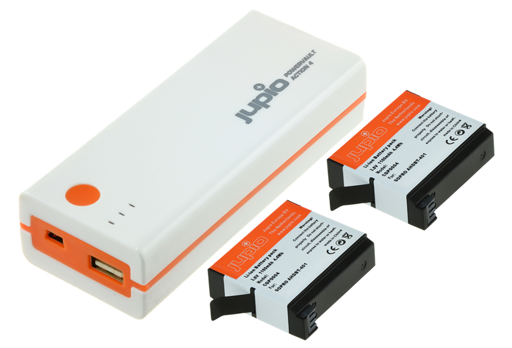 Jupio PowerVault Action 4 (for GoPro HERO 4) + 2x AHDBT-401 1160 mAh